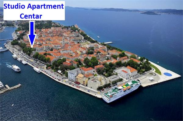 Apartament Center este situat în centrul orașului Zadar. Apartamentul se afla la etajul al patrulea al unei clădiri vizavi de Muzeul Național. Apartamentul se confruntă cu soare și are vedere la mare, zidurile vechi ale orașului, portul și Forumului. Apartamentul este situat in centrul si toate facilitatile turistice sunt situate la 5-10 minute de mers de la apartament. Apartamentul este complet echipat si are tot ce oaspeții au nevoie pentru un sejur confortabil și bucurați-vă de frumusețea orașului Zadar.