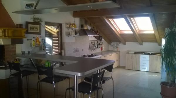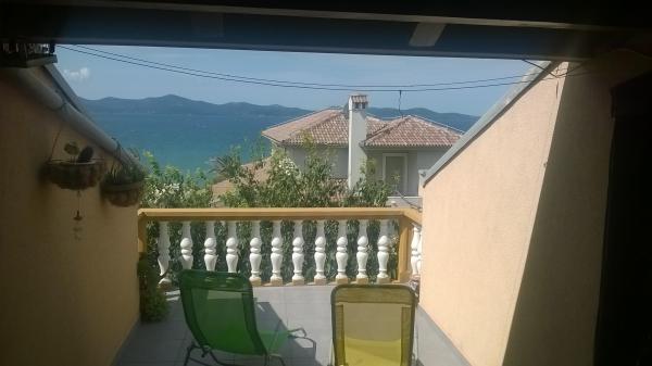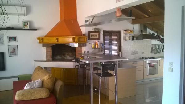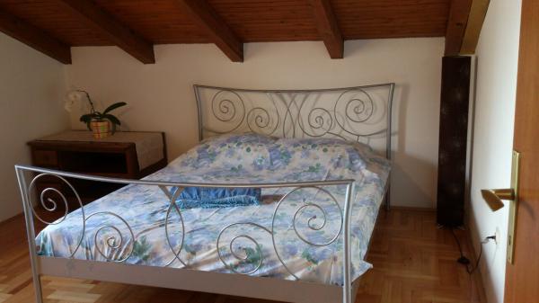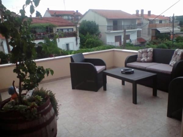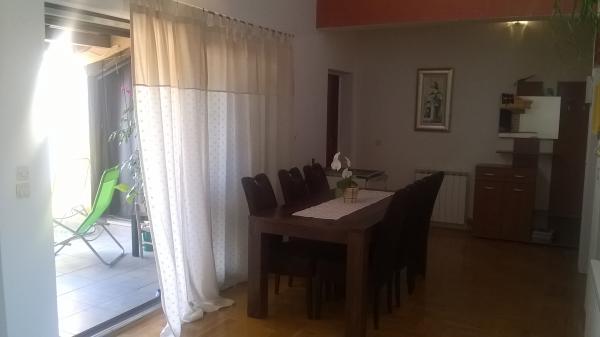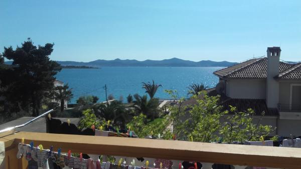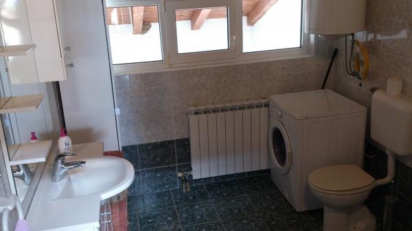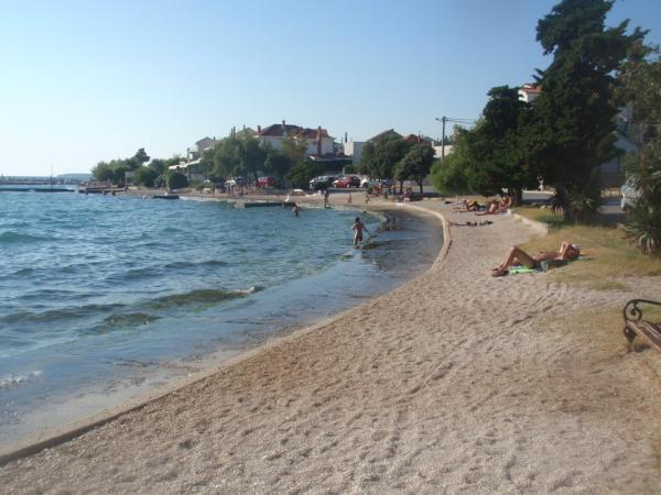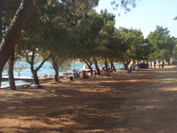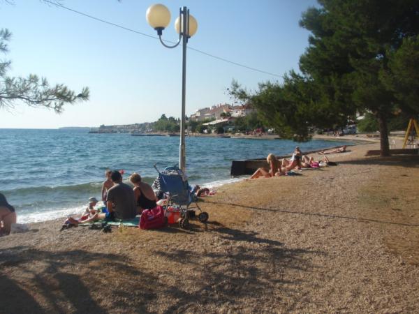 Apartamentul este situat la mansarda casei, 125 m2, circa 50 m de la mare. Ea are trei dormitoare, baie, living mare cu semineu, aer conditionat, bucatarie complet utilata si doua balcoane mari. În caz de necesitate, există, de asemenea, pătuț și scaun înalt pentru un copil. Parcare pentru masina in curtea din fața apartamentelor, animale de companie sunt binevenite.