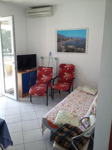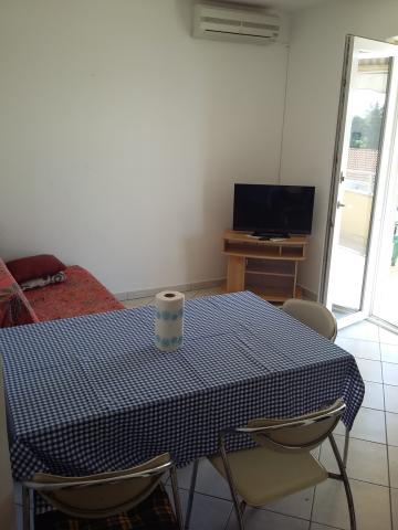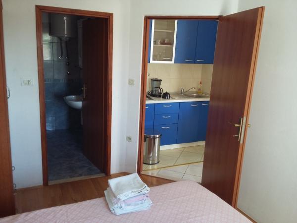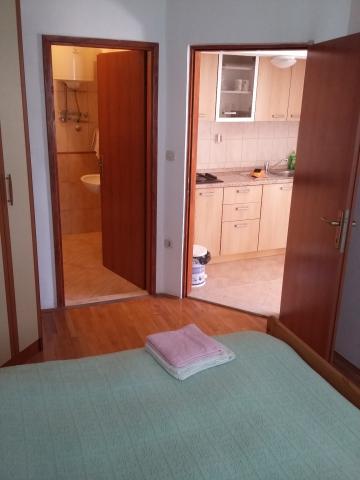 Închiriez apartamente, la aproximativ 50 de metri de mare. În apropiere se află un magazin, bancă, birou de schimb valutar, restaurante, fast-food, stație de autobuz ... Plaja este cu pietriș - nisipoasă lângă o pădure de pini, plaja are steag albastru. Apartamentele au 1 dormitor cu pat dublu, living cu bucătărie și baie. Livingul are un pat suplimentar pentru 1 adult sau 2 copii. Apartamentul are Wi-Fi gratuit, TV prin satelit și aer condiționat. Lenjeria de pat este inclusă în preț.