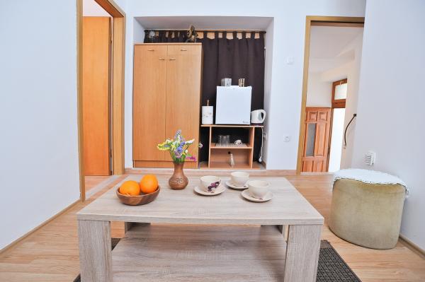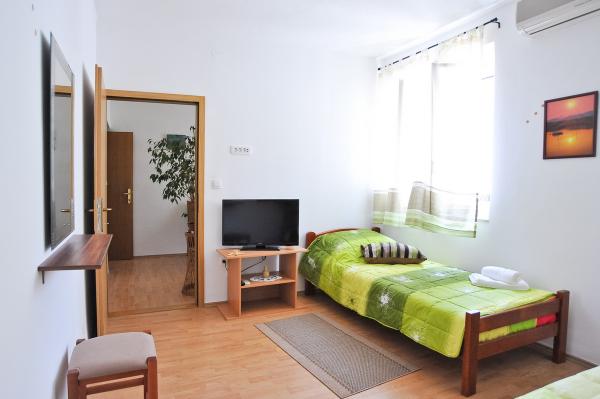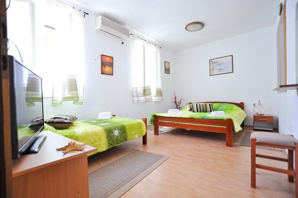 Acestea sunt camere frumoase și un apartament în centrul orașului Zadar. Atunci când sunt conduși de liniște deplină și pace, întotdeauna frumos când poți să dormi și trag cu ochiul acolo simți adevăratul spirit al orașului. Ele sunt literalmente în prima casă când a intrat în orașul vechi, pe partea dreapta. Casa face parte din istoria orașului Zadar, o frumoasă piatră. Avem o cameră pentru 4 persoane, are un pat dublu mare și o canapea într-o frumoasă sală unde se poate servi micul dejun. Acesta are Wi-Fi, frigider, ceainic, feluri de mâncare, TV prin satelit și, desigur, cu aer condiționat. Cealaltă parte a casei are trei dormitoare și o bucătărie pe care am închiriat împreună, deoarece au o baie, toate stabilite pentru a primi acea parte a 7 persoane. O cameră are trei paturi, iar celelalte două sunt situate într-o mansardă romantică cu lucarne și ambele sunt duble. Ei au, de asemenea, o sală complet echipată ca și camera anterioară. Totul este departe de camera de doar 5 minute de mers pe jos. Toate muzeele, magazinele de antichități, farmacii și parcare publică este chiar lângă camera. Bine ai venit.