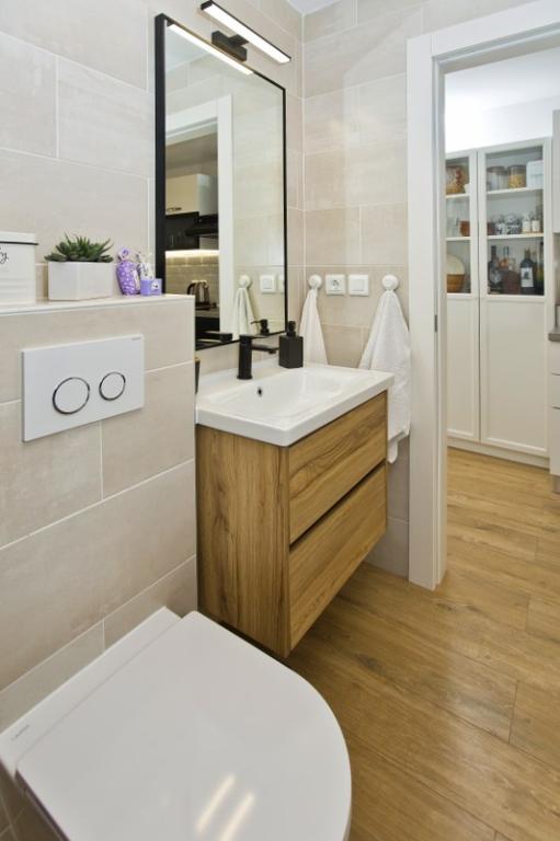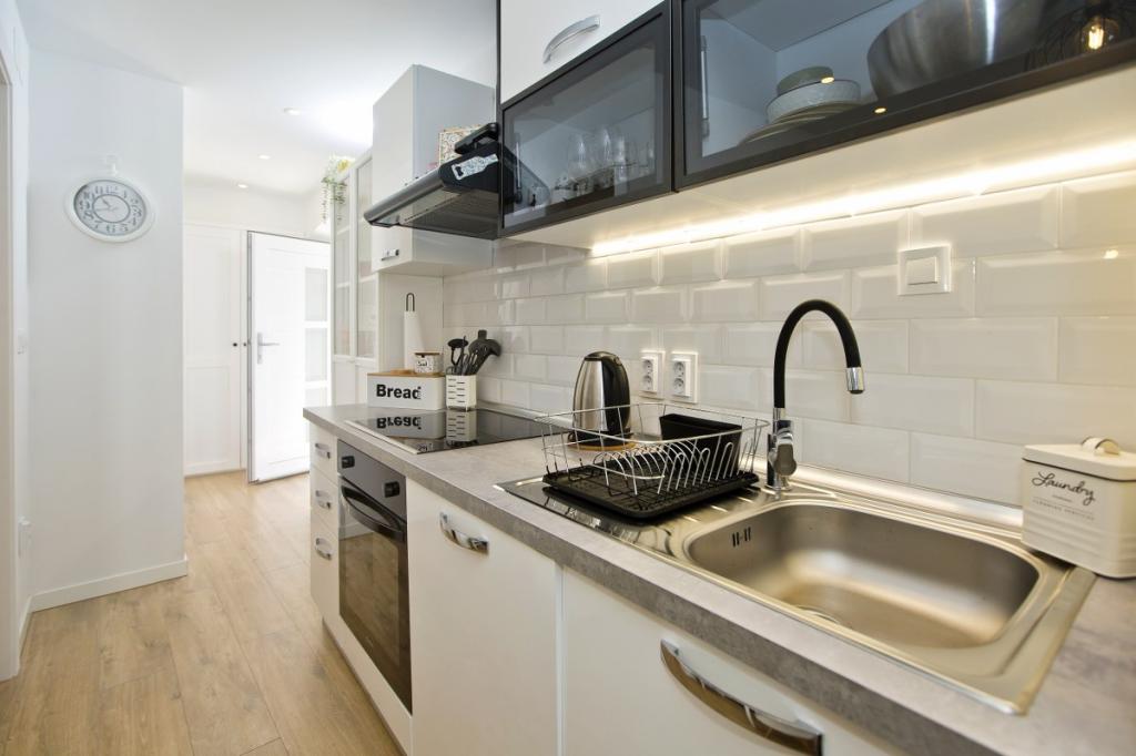 Casa este formată dintr-un apartament de 30 m2 și o curte de 20 m2. Apartamentul este format dintr-un dormitor, baie, living cu bucătărie și o mică cameră de depozitare. Camera are o priveliște frumoasă și dispune de un pat dublu sub care se află o cutie de depozitare a bagajelor de 160x200 cm. Există, de asemenea, un dulap mare cu uși glisante, două noptiere cu veioze și aer condiționat. Baia are duș, calorifer, ventilator, chiuvetă și toaletă. Livingul cu fereastră și bucătăria sunt conectate. Livingul are aer condiționat, canapea, televizor, masă de bucătărie cu scaune. Bucătăria este compusă dintr-un cuptor, plită, mașină de spălat vase, frigider, cuptor cu microunde, încălzitor de apă și prăjitor de pâine. În mica cameră de depozitare se află o mașină de spălat, un boiler și un suport pentru încălțăminte. Curtea este destinată socializării și relaxării și există un șezlong, umbrelă de soare, scaune și un set de grădină. Acesta este un apartament situat la primul etaj al casei familiale, iar în fața sa se află o curte mare.