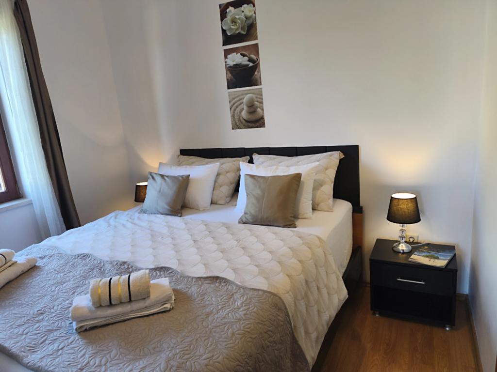 Apartamentul este frumos. Totul este impecabil de curat, ordonat și aranjat cu mare atenție la detalii. Paturile și pernele sunt foarte confortabile, ceea ce este important în vacanță. Apartamentul nostru are vedere la mare și o grădină frumos amenajată care relaxează sufletul, iar plaja se află la doar 2 minute de mers pe jos. Există, de asemenea, cafenele, restaurante, un loc de joacă pentru copii, o brutărie, tot ce ai nevoie în apropiere - și totuși ai liniștea ta. Și cel mai important lucru – gazdele Renata și Elvis. Oameni minunați, calzi, care depun cu adevărat efort în toate, se vede că au pus multă dragoste și inimă în aceste apartamente. Cel mai important lucru este ca oaspetele să fie mulțumit și să se simtă ca acasă - relaxat. Nu mai vezi peste tot o astfel de abordare în ziua de azi. Ne place atât de mult aici încât știm deja că vom reveni. Dacă sunteți în căutarea unei cazări ideale în Zaton, vă recomand sincer să rezervați din timp, deoarece locuri de acest gen se umplu repede - și pe bună dreptate. Mulțumesc, dragi Renata și Elvis.