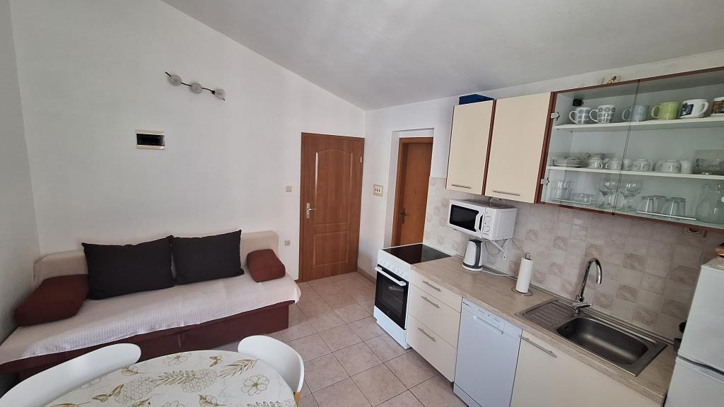 Ambele apartamente sunt situate la etajul superior, în liniștitul golf Koromašna, plaja fiind în fața casei. Avantajul acestor apartamente este că puteți vedea marea din pat. Oaspeții au la dispoziție un grătar. Ambele apartamente au aer condiționat și wifi, care sunt gratuite. Parcarea este în fața casei și este, de asemenea, gratuită. Taxa de turist este inclusă în preț. La capătul golfului există un mic restaurant. https://youtu.be/YOdYoQYLsY4