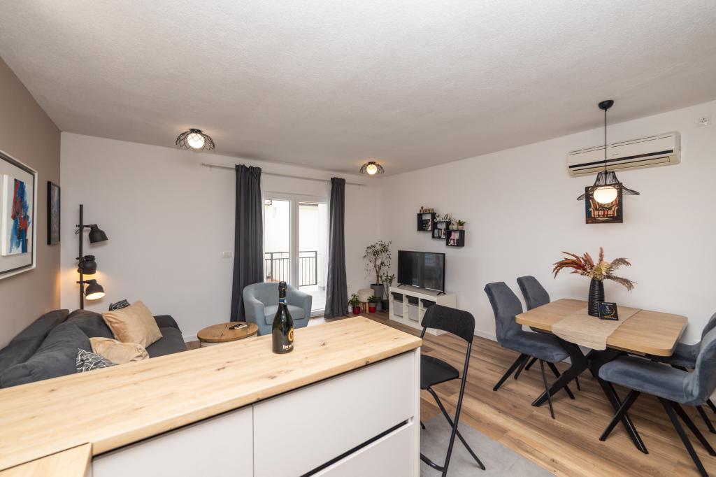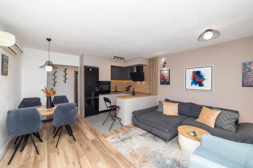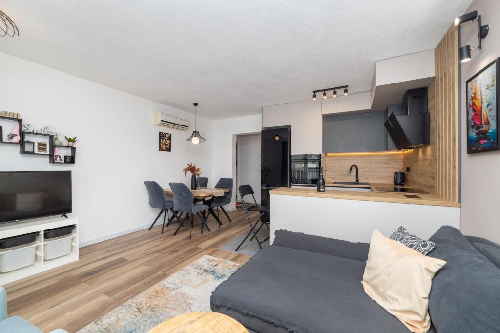 Locuim intr-un apartament 2+2, camere separate, bucatarie. Peste tot curat si utilaje in stare buna, fara mobilier vechi etc. Pretul este bun dupa parerea mea, fara nicio taxa suplimentara pentru aer conditionat, caine, etc.... Viata de noapte doar pe plaja, liniste deplina in jurul apartamentului, noi au fost surprinsi. Nu prea i-am văzut pe proprietari, doar predarea la început și apoi la sfârșit, am circulat mult, bucurându-ne. Plajele cu pietriș sunt avantajoase prin faptul că marea este cu adevărat limpede. Dacă ar trebui să mă întorc vreodată în zonă, știu unde să merg și nu cred că aș căuta în altă parte dacă ar fi disponibil. Deoarece nu există perfecțiunea, aș dori să fac o mică notă. Tigaia de pe aragazul cu inducție a fost puțin greu de încălzit, probabil că nu a fost construită direct pentru inducție, dar se putea face ceva în privința asta, a durat doar puțin timp, restul vaselor au fost în regulă.
