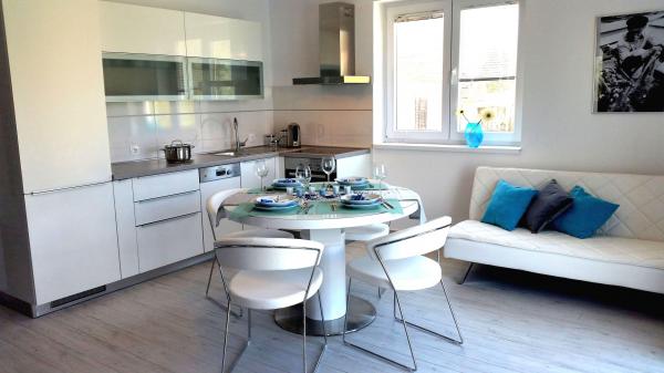Frumos, de brand nou și apartamente bine echipate, aproape de mare, în Zman pe Long Island. Fiecare apartament are propria terasă cu o vedere uimitoare a golfului, la mare și insule. Facilitatea este situat în trei minute de mers de centrul orașului, unde puteți găsi un oficiu poștal, magazine, plaje, cafenele ... In apropiere este un teren de baschet și un loc de joacă pentru copii. La doar un minut de mers pe jos de la apartament, pe partea opusă a golfului, se află un restaurant care în plus față de o vedere frumoasă la mare și orașul se află amabilitatea gazdelor si o bună selecție de mâncăruri locale. Apartamentele de reflecție mare sunt complet echipate - de la masina de spalat vase si rufe, prin mixer, ceainic electric, la gratar si terasa cu masa si scaune pentru bucuria în mirosurile și sunetele mării ... Vizitați-ne în confortul de apartamente și experiență adevărat Dalmația moderne Marea Mediterană cum a fost odata!