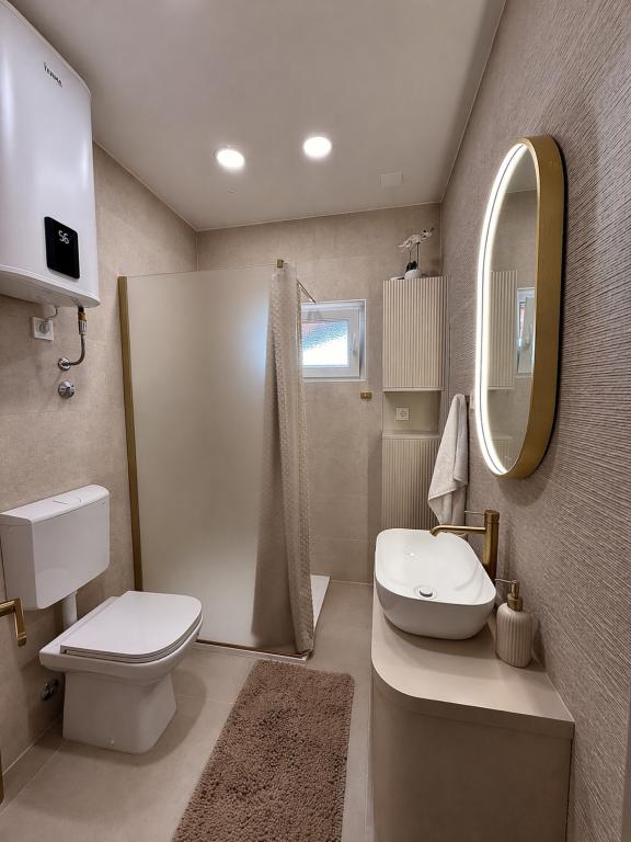 Apartamente echipate, situate n primul rnd la mare. Distan?a de plaja principal? este de aproximativ 10 minute de mers pe jos, unde exist? un bar pe plaj?. Plaja poate fi accesat? pe jos sau la 3 minute cu ma?ina, unde se ofer? parcare gratuit?.
