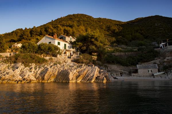 Cazare turistică într-un stil Robinson Crusoe, se află într-un golf liniștit pe partea de Pakomina de nord a insulei și aparține satul Gdinj. Casa este situat chiar deasupra plajele curate de prundis, la 10 m udljenosti, și aveți un malul mării privat pentru înot. Vederea de pe terasa, care are o nuanta naturala a pinului mare este frumos, veți vedea marea și plaja si insula Brac larg și panta de munte. În golful sunt doar trei case, în jednij dintre ele este un restaurant de familie care oferă o mare varietate de pește și specialități locale și puteți obține la gusta alimente sau demipensiune. Pentru cazare oferim o casa plina pe două etaje. La parter este o terasă mare cu gratar, pivniță, bucătărie cu aragaz, două frigidere (unul gaz electric și celălalt) și camera de zi (cu pat) și baie. La etaj sunt trei dormitoare cu sapte paturi si o baie, si acces la terasa. Din marile orașe ale centrului insulei sunt la o oră. Oferim internet, incluse în preț și de televiziune (canalele locale). Loc de parcare este asigurată, precum și de acostare.