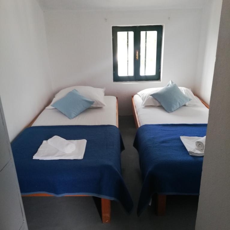 Casa de vacanță Žut este situată chiar pe malul mării. Este o casă cu două etaje, cu două dormitoare: una single și una dublă și o canapea extensibilă. Casa are 40m2 cu o grădină mare de 500m2, o terasă și un balcon. Casa este dotata cu apa curenta, curent 220 V (cu panouri solare), internet, televizor, frigider cu congelator, aragaz, gratar si dus exterior si interior. Casa este situata in golful Strunac, unde se afla restaurantul Bain. Există și alte restaurante în golfurile din apropiere, la care puteți ajunge pe jos.