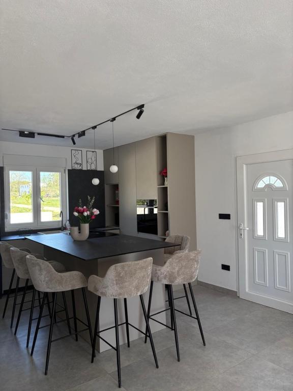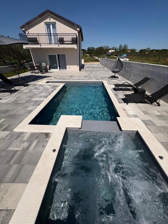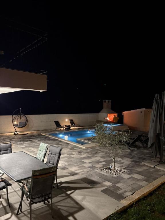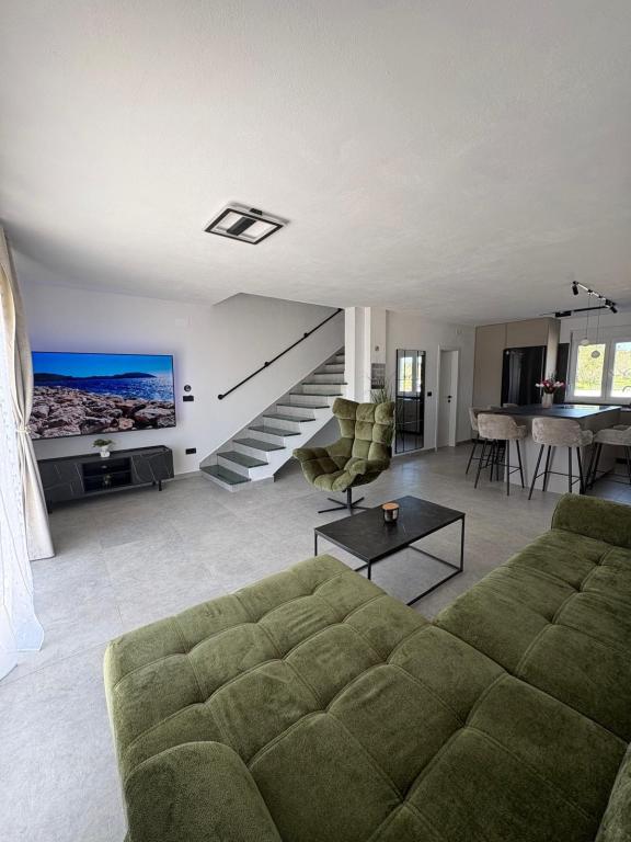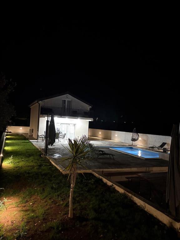 Casa de vacanță este situată în inima unei plantații de măslini, la doar 2 km de mare și este un loc ideal pentru o vacanță completă în liniște și pace. Înconjurată de natură, oferă un sentiment de intimitate departe de aglomerația orașului. O atmosferă specială este oferită de piscina încălzită, perfectă pentru a vă bucura de zilele de primăvară și vară. Grădina spațioasă este un spațiu ideal pentru activități în familie. La primul etaj al casei se află 3 dormitoare cu paturi duble și o baie mică. Al treilea dormitor are, de asemenea, un balcon cu o priveliște frumoasă asupra vegetației, iar la parter se află o bucătărie spațioasă și un living. Casa de vacanță Frano este o alegere ideală pentru dumneavoastră, deoarece combină confortul naturii și apropierea de mare, oferindu-vă tot ce aveți nevoie pentru un sejur de neuitat. Casa este dotată cu toate electrocasnicele și un șemineu exterior.