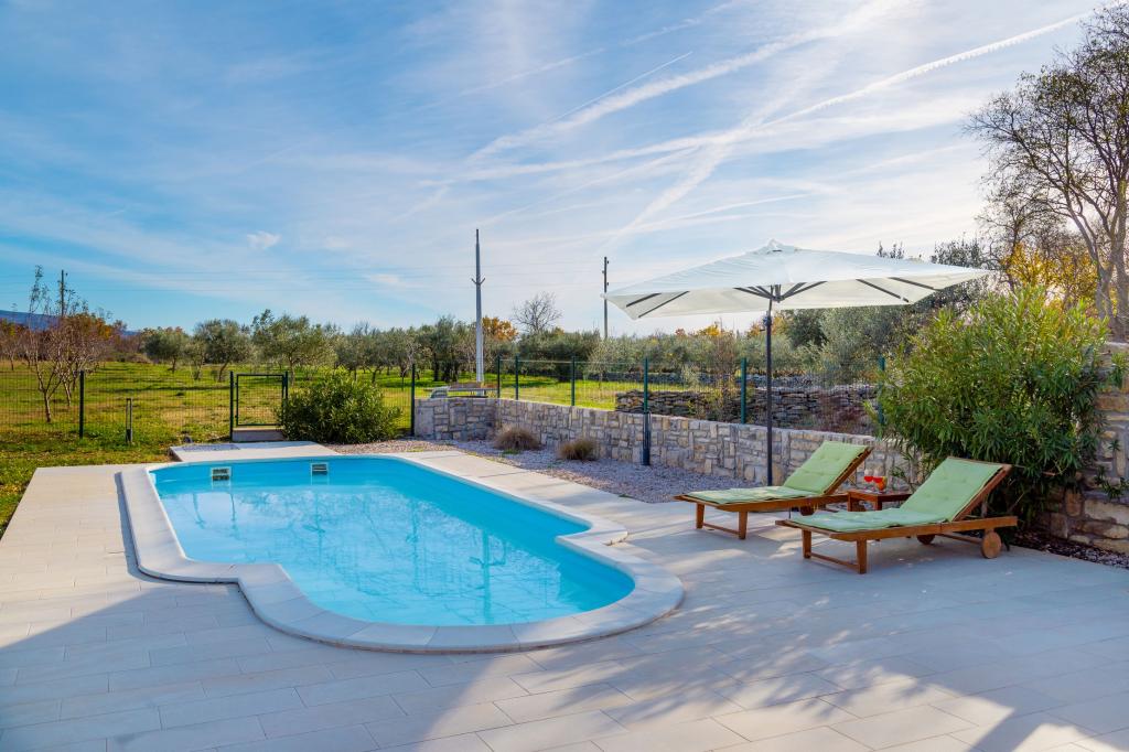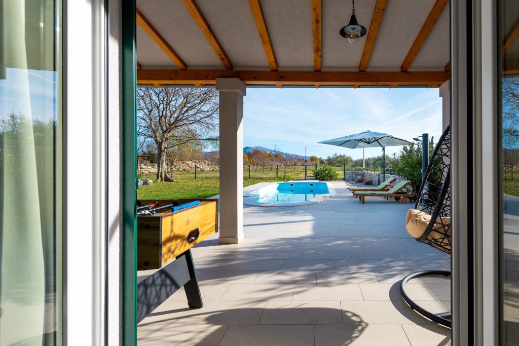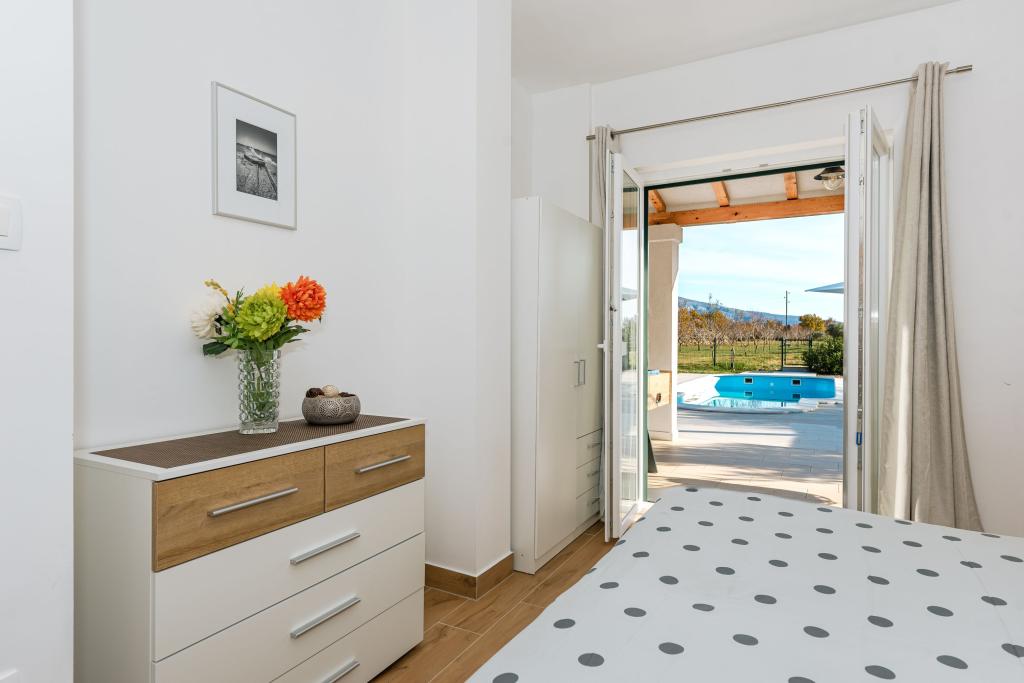 Dacă doriți să simțiți farmecul Dalmației, să vă bucurați de intimitate înconjurat de verdeață departe de mulțimea cotidiană, Villa Bajadera este locul potrivit pentru dvs. Decorat intr-o combinatie de piatra, lemn si motive moderne, este ideal pentru relaxarea mintii si a corpului. La doar 4 km distanta de Parcul National Krka, monumente culturale si monumente aflate sub protectia UNESCO, va puteti distra cu canotaj sau calarie. Vila Bajadera este nou construită și complet utilată, cu două dormitoare, bucătărie și sufragerie, baie și o terasă frumoasă cu vedere la piscină și livadă de măslini. Fiecare cameră este dotată separat cu aer condiționat.