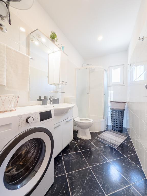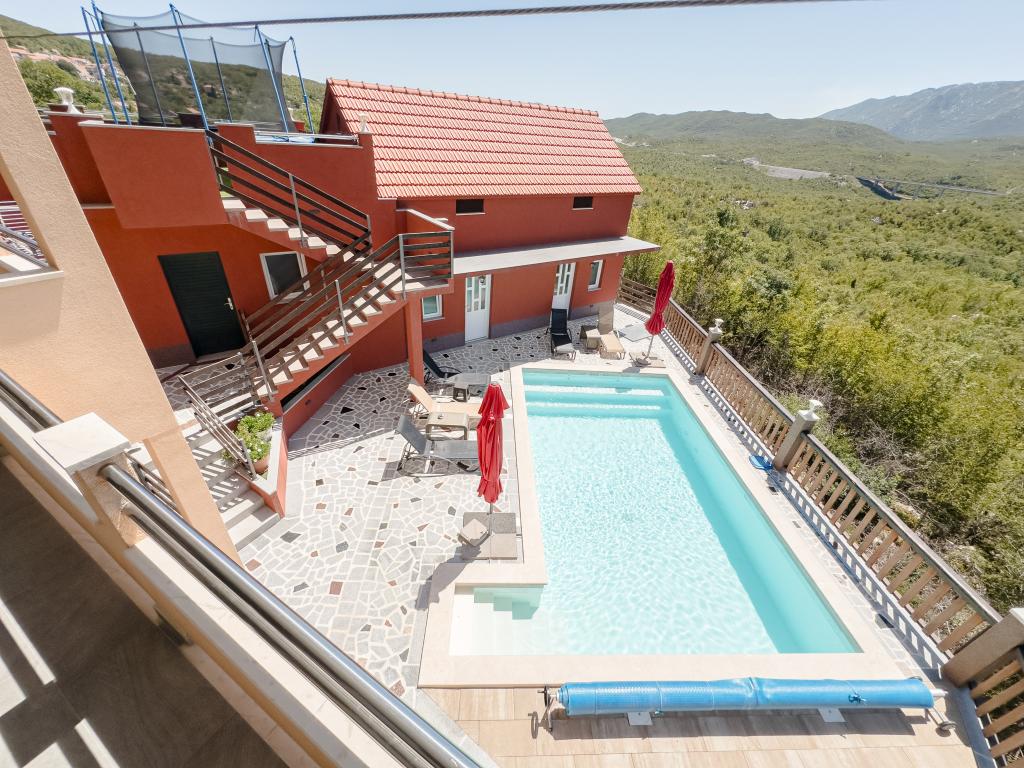 Casa de vacanță spațioasă va oferi distracție și relaxare completă pentru 12 persoane. Grădină spațioasă, cu o piscină încălzită de 7x4 metri, cu apă și masaj cu aer pentru distracție și relaxare. Lângă piscină există o bucătărie de vară cu o sufragerie și o baie, care include și un grătar în aer liber. Fiecare apartament are 3 dormitoare, 2 băi, bucătării complet echipate, camere de zi spațioase cu televizoare inteligente și balcoane cu vedere la piscină și la Muntele Biokovo. Oferta include o trambulina pentru cei mici, un gratar interior, 5 locuri de parcare si o terasa mare. Unicitatea acestei proprietăți constă în faptul că casa este situată într-o zonă retrasă, astfel încât să fii sigur că te vei bucura de intimitate deplină. Locația casei este excelentă deoarece se află la 25 de minute cu mașina de Marea Adriatică, la 10 minute cu mașina de magazine, cafenele și restaurante. Orașele Makarska, Imotski, Split, Omiš, Međugorje, Makarska și alte locații atractive sunt la mai puțin de 20 de minute până la 1 oră cu mașina de noi. Intrarea pe autostradă este la 9 km.