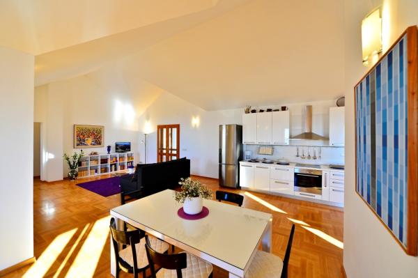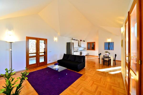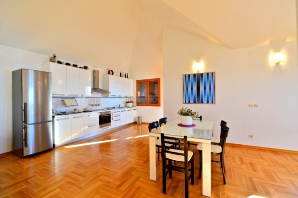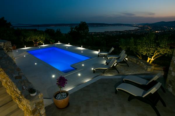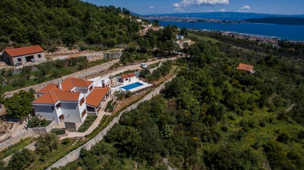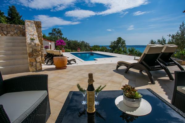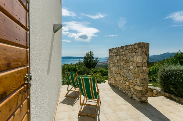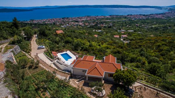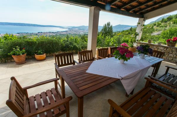 Vedere incredibil uimitor, nu veți dori să părăsească vila Berry. Vila, Casa țară, cu piscină în aer liber 8x4 m pe munte Kozjak, la o înălțime de 210 m deasupra nivelului mării, cu o vedere directă la mare și insule. Accesul la vila se face prin drum asfaltat. Situat într-o livadă de măslini și livada în mediul de măslini vechi. Curtea este plantată cu plante native. Distanta de orașul Split și Trogir este de 15-20 de minute, iar orașul Kastela 10 min. Vila este situată de-a lungul traseului de drumeții. Poziția a vilei este de site-ul de vechi villa rustica de la epoca romană. Vila este format din 2 apartamente A (4 1), fiecare pe podea și se inchiriaza in totalitate. Cazare pentru 8 persoane în paturi principale și 2 paturi suplimentare. Fiecare apartament are o bucătărie, sufragerie si living si doua dormitoare și băi și un balcon spațios, terase și verande. Vila este, de asemenea, un cuptor de pâine - gratar cu propria bucătărie de vară acoperit. Încălzirea acolo în casă și doar la parter (max. 5 persoane).