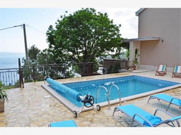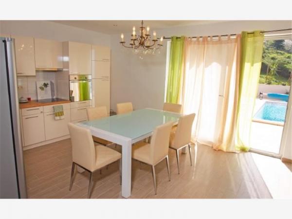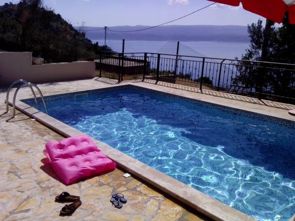 Casa este modern si complet echipate. Casa are o piscină care oaspeții noștri se pot reîmprospăta și relaxa în zilele fierbinți de vară. Lângă piscină în partea acoperită a gratar cu o masă mare de lemn și bănci. Acesta are un loc tuš.Lijepo în aer liber pentru a socializa. Din mijlocul casei este o terasa mare de 100 de metri patrati, care oferă o priveliște magnifică a mării, orașul, munții, insulele, râu Cetina, Forticu determinare. Este foarte frumos. Se află la doar 20 minute de mers pe jos în oraș, iar cu masina in 5 minute. În orice caz, aveți un loc liniștit și confortabil pentru a vă bucura împreună cu familia și prietenii, și timp de 5 minute vă aflați în centrul orașului care vă oferă cu tot ce este necesar pentru o vacanță de calitate. De asemenea, dacă vrei să vii cu prietenii lor cu noi și să se relaxeze un pic nimeni nu va interveni deoarece casa este singur. Doar în față, aveți un garaj acoperit. Casa este pe doua etaje. Dole dispune de 100 de metri pătrați și ultimul etaj 50. etajul superior are un balcon, de la care nu există, de asemenea, o vedere de la toate. Totul este la îndemână. Obiectul este ta