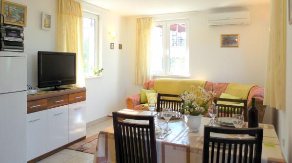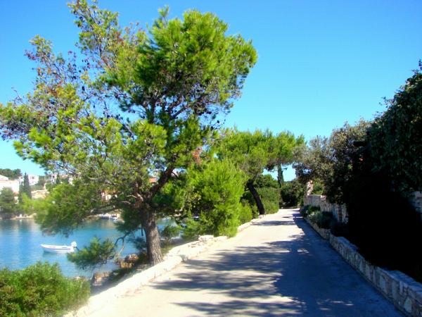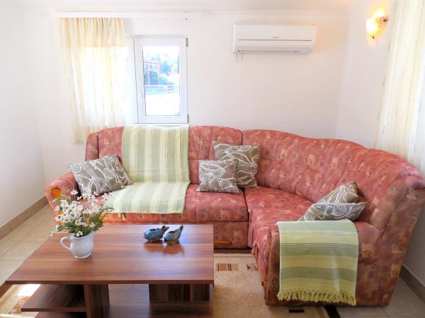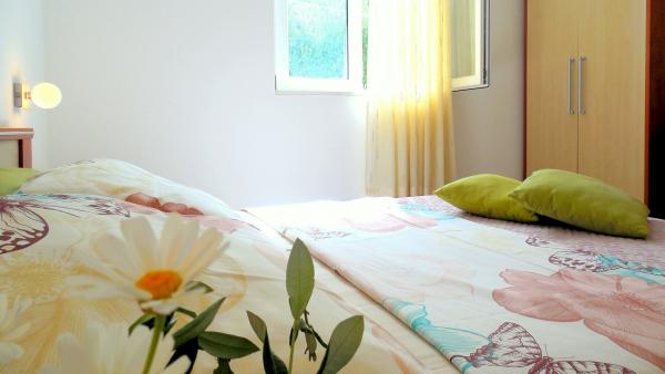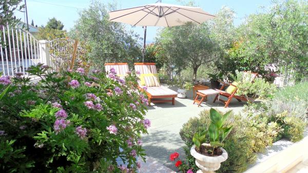 Cu două apartamente frumoase, de 57m2, vila Sunray înconjoară o grădină amenajată cu o dragoste de 230 m2, cu un spațiu mare pentru relaxare și relaxare, înconjurată de măslini, mimosuri și flori. Există un soare magnific pe terasa din grădina de lângă gratar Dalmatian, masă mare în aer liber și scaune de teak punte. Câteva băuturi răcoritoare pot fi găsite sub dușul exterior. Familia și prietenii dvs. vor iubi acest loc. La doar 50 de metri de vila Sunray, există o plajă frumoasă, luminoasă și spațioasă cu pietriș, care se întinde direct în marea albastră turcoaz. Pe plajă există baruri frumoase de plajă, iar restaurantele din apropiere vă invită la cină în seara caldă sub stele.