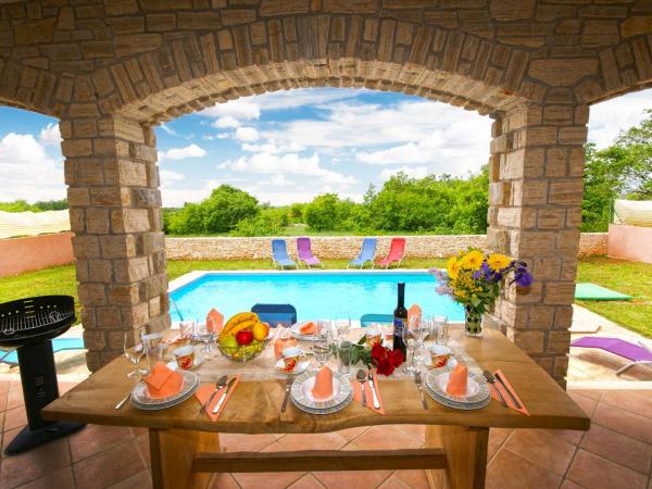 complet echipate vila cu piscină, lângă Pula. vila pentru 8 persoane. Vila are 4 dormitoare, 3 bai, bucatarie si camera de zi. complet echipata: masina de spalat vase, aer condiționat, TV prin satelit ,. Casa are propria parcare privată și o piscină, 2 terase si gratar. a fost construită din piatră. Interiorul casei este realizat din lemn și piatră.