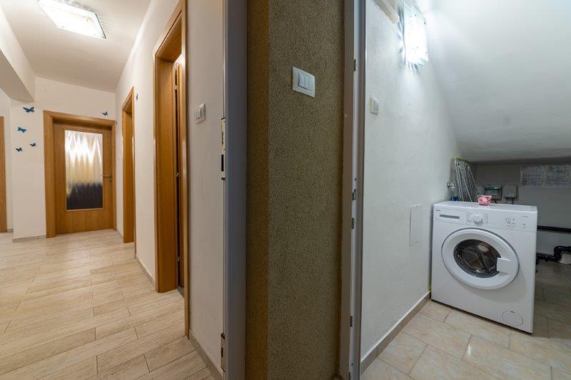 Ne aflăm în micul oraș Kaštelir, la 10 km de Poreč. Casa este formată din două apartamente separate, unul la parter, celălalt la primul etaj, casa este închiriată în întregime. Fiecare apartament este compus din living, bucatarie, doua dormitoare, fiecare cu baie proprie. Fiecare apartament are 3 aparate de aer conditionat, unul in living si unul in fiecare camera. Apartamentul este dotat cu tot ce este necesar pentru un sejur placut. În exterior există un loc de joacă pentru copii cu leagăne, o trambulină și o masă de tenis de masă. Curtea este complet împrejmuită, astfel încât să vă puteți aduce câinele, percepem o taxă de 12 euro pe zi pentru câini. In exterior mai avem o piscina de 8*4m, sezlonguri, umbrele de soare si o bucatarie de vara cu gratar. In fata apartamentului avem 6 locuri de parcare, dintre care 2 sunt acoperite Din cauza altor obligatii cu noi in lunile iulie si august se poate face rezervare doar de duminica pana duminica, iar in celelalte luni minimul este de 5 zile iar ora de sosire poate fi in orice zi a saptamanii. Casa este ideala pentru 8 persoane, dar poate gazdui si 10 persoane. Pentru o persoana suplimentara, avem o taxa de 25€ de persoana.