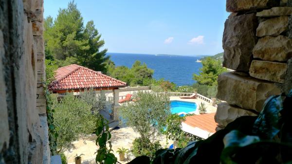 STONEHOUSE- Villa plop / mic paradis / Mare: 50 m. De la plajă: 80 m. Piscina, sauna, jakyzi, teren de sport, locuri de parcare, gradina, terasa. Vila dispune de 7 camere pentru 14 persoane. 4 camere de zi cu canapele extensibile pentru 4 persoane. Cazare maxim pentru 19 persoane. Există 6 bai, 1 duș în aer liber, 4 bucatarie, zona acoperită deschis pentru socializare, 4 Gratar, 2 gratar de interior. Complet elegant si utilat. Casa de piatra are una dintre cele mai frumoase grădină în Croația. App. 1 = (2) / 2 App. 2 = (2) (2) / 1 App. 3 = (2) (2) / 1 App. 4 = (2) (2) / 1 Fiecare apartament are o intrare privată cu o terasă privată și o terasă comună în jurul piscinei. Sauna, 2 jakyzi, grădină, teren de sport, parcare pentru 4 masini pe teren închise, acces gratuit la internet. Ea are: Pool: 10, 50 x 5, 10 m de jakyzi 2, 00 x 2, 00 m, apa de mare. Un loc pentru loc romantic și destul de, la 9 km de Vela Luka. Vedere frumoasă la mare și apusul de soare.