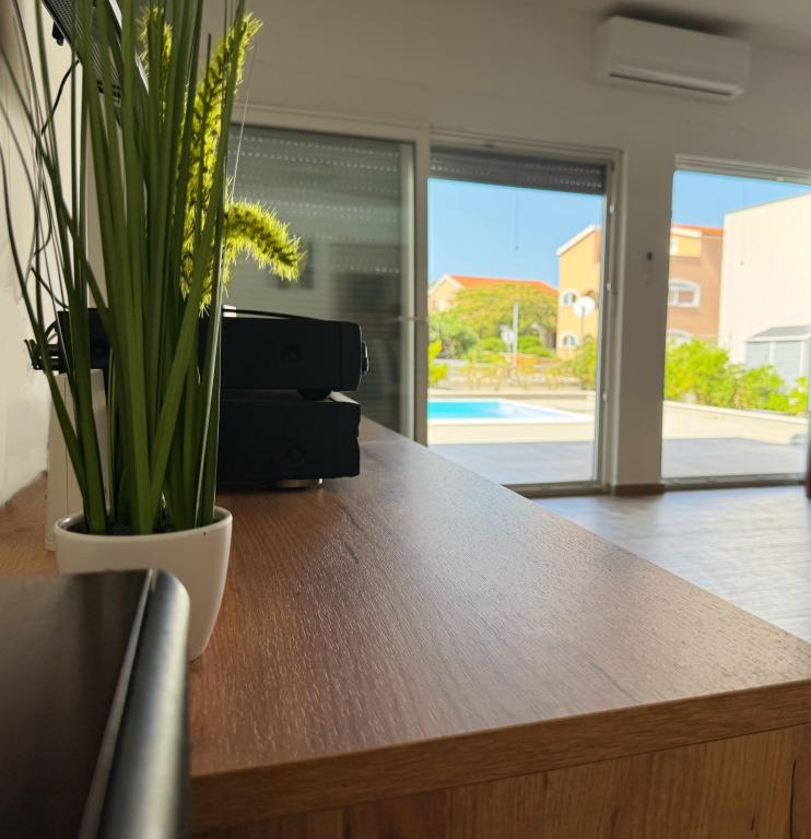 Această frumoasă casă de vacanță, cu o piscină mare în aer liber, oferă un confort cu adevărat de invidiat. Casa are o grădină amenajată spațioasă, parcare privată pentru mai multe vehicule, două terase mari în aer liber, o zonă de plajă în jurul piscinei. Această minunată casă de vacanță este situată într-o zonă liniștită a insulei. Apropierea de plajă, magazine și alte facilități esențiale face ca această locație să fie și mai atractivă și suntem siguri că va îndeplini toate așteptările dumneavoastră. Contactați-ne cu încredere.