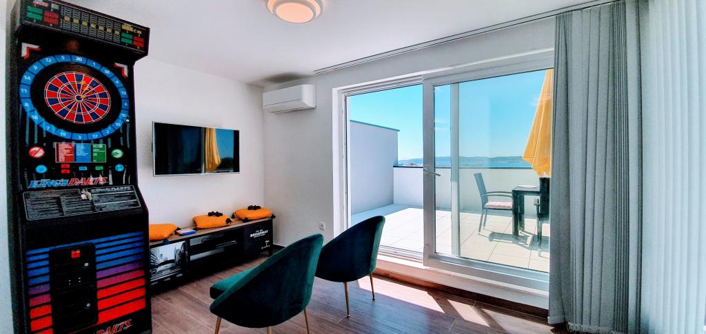 Noua Vilă, abia terminată, decorată modern vă va oferi o vacanță de neuitat și perfectă în Zadar. Vila cu vederi panoramice asupra orașului vechi este situată în Zadar, într-o locație liniștită, la doar câteva minute de mers cu mașina de orașul vechi, unde se organizează zilnic diverse evenimente, precum și o serie de restaurante cu o ofertă gastronomică excelentă, precum și o serie de atracții istorice. Vila este formată dintr-un subsol cu sală de sport și tavernă, parter cu living cu bucătărie utilată, toaletă cu mașină de spălat și cameră spa cu jacuzzi și duș cu masaj. La primul etaj există 4 camere, dintre care 3 au o toaletă mare, în timp ce o cameră are propria toaletă și balcon cu o vedere frumoasă la mare și la piscina în aer liber. La etajul al doilea există o vedere panoramică la Zadar și la mare, precum și o cameră dotată cu o consolă de jocuri și săgeți. În fața vilei există o frumoasă piscină mare de 9x4, precum și o terasă și șezlonguri. În timpul șederii dvs. în Zadar, vă sugerăm cu siguranță această frumoasă Vilă.
