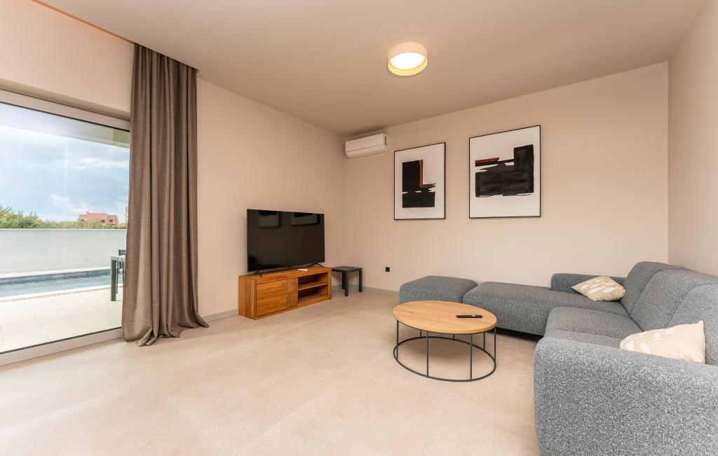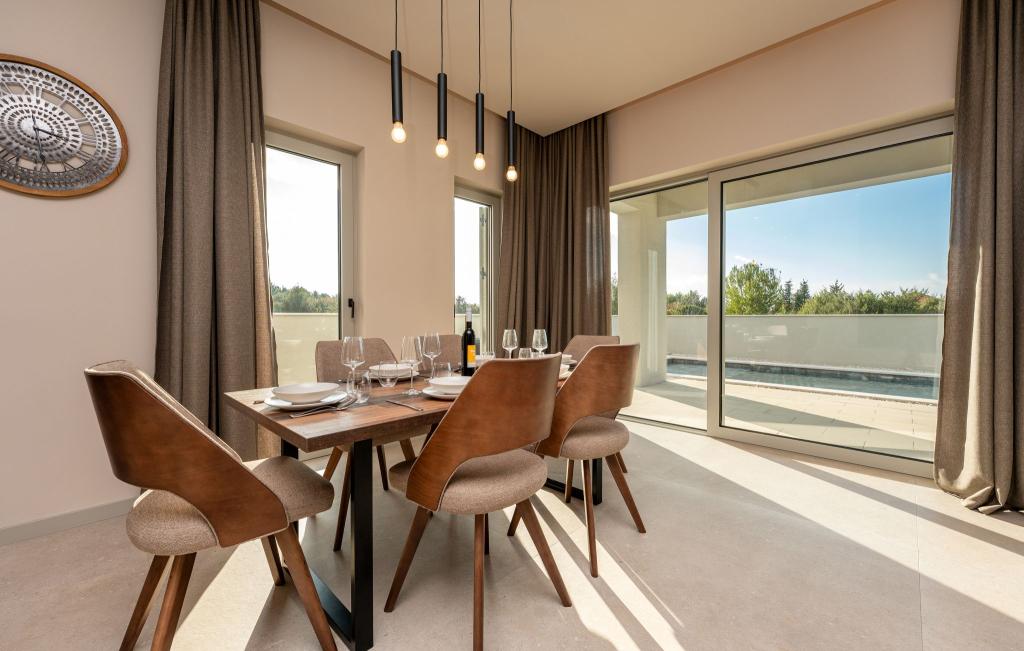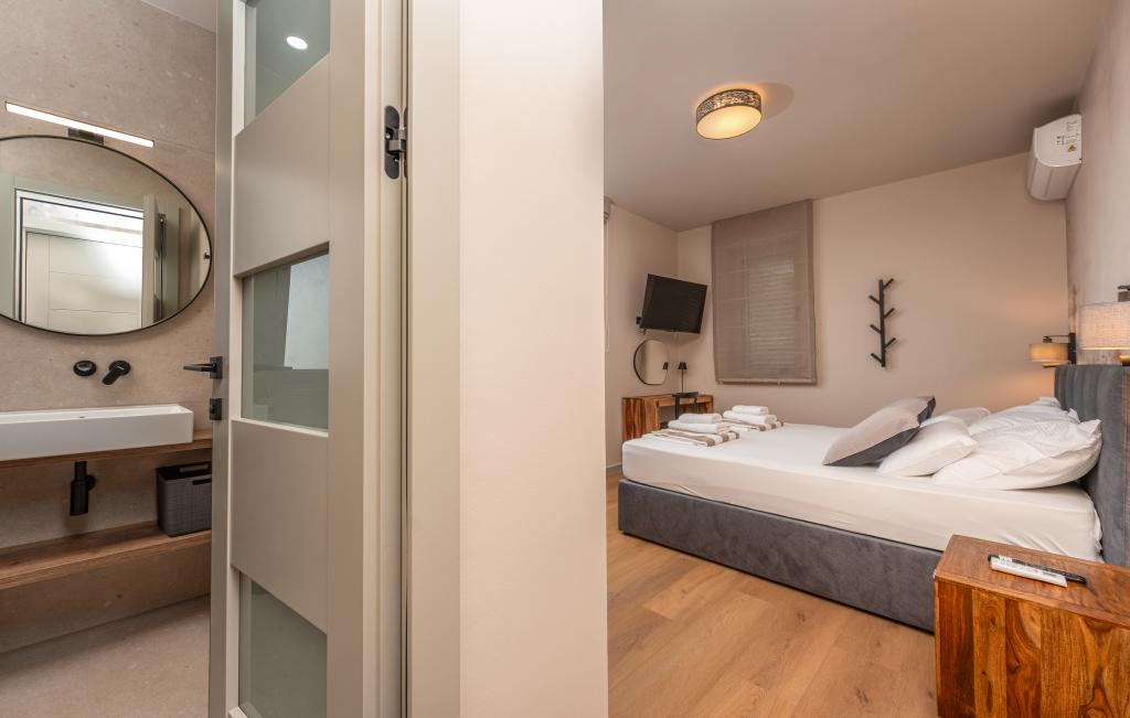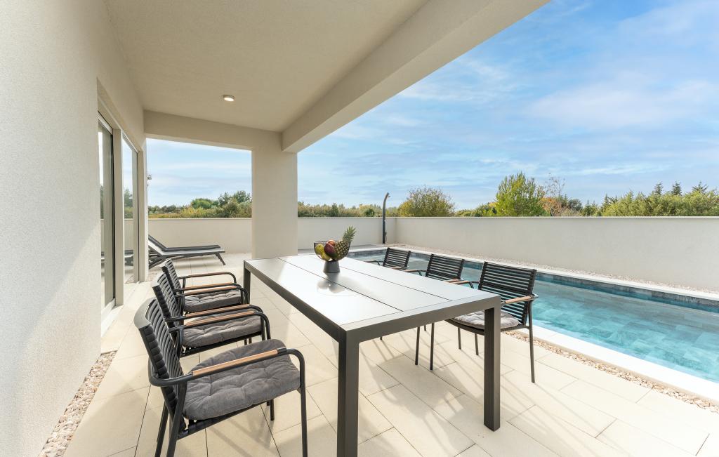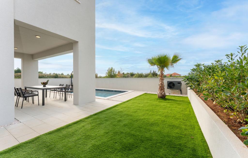Casa de aproximativ 270 m² este situată în Zaton, la 12 km nord-vest de Zadar. Clădirea este nouă, finalizată în iunie 2025. În curtea împrejmuită există 4 locuri de parcare, 2 stații de încărcare pentru mașini electrice, o piscină încălzită de 30 m² și o terasă mare unde vă puteți bucura de umbră până după-amiaza. Casa are două apartamente, identice ca dispunere, fiecare cu living, bucătărie complet utilată, 3 dormitoare, 2 băi și o toaletă suplimentară. Toate camerele sunt dotate cu aer condiționat și fiecare este dotată cu un televizor inteligent. Casa este proiectată pentru 12 persoane. PS5 este situat în camera copiilor de la fiecare etaj al casei. Pe acoperișul casei există o terasă cu vedere la mare, o chicinetă suplimentară, mobilier de grădină și o cadă cu masaj pentru a vă bucura de timpul zilei și al serii. Vă puteți bucura de facilitatea noastră cu familia și/sau prietenii și puteți fi împreună, dar și separat (fiecare în propriul apartament) atunci când aveți nevoie. În timpul zilei, cu siguranță vă veți bucura de piscină și de umbra oferită de terasa inferioară, în timp ce seara vă veți bucura de acoperiș.