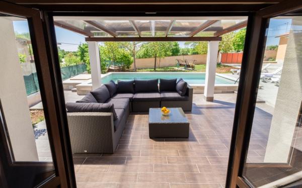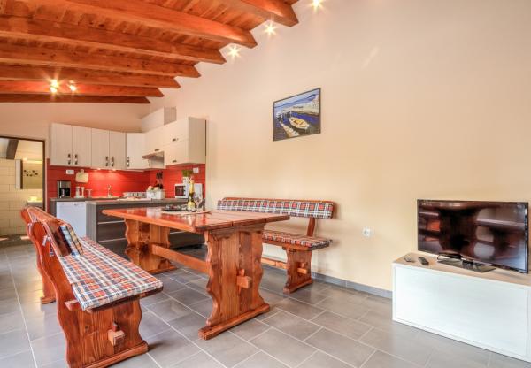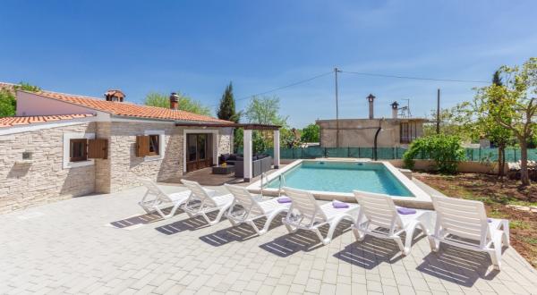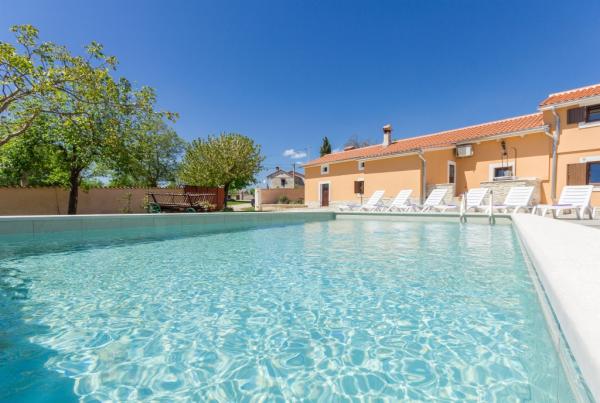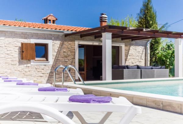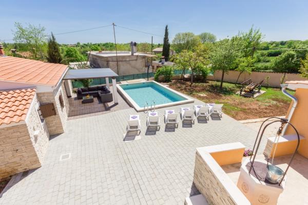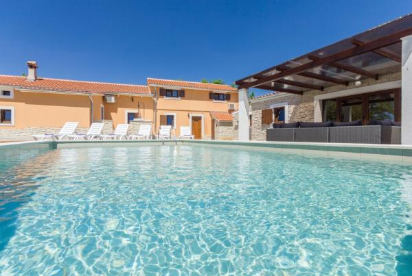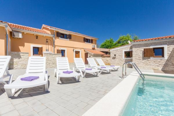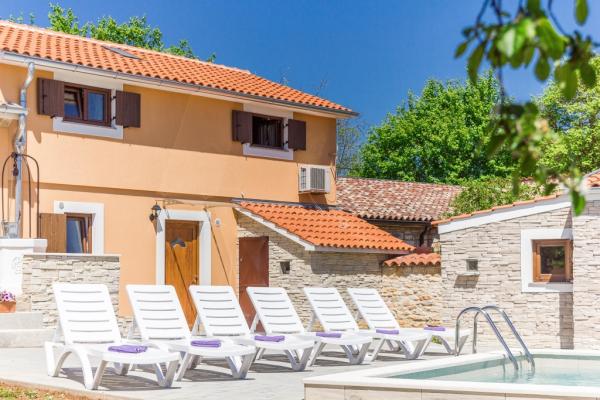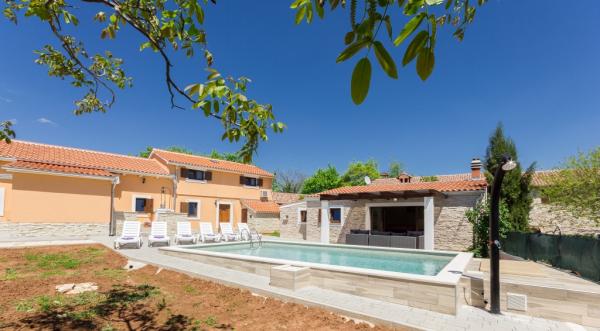 Combinația de stil Istria modern și tradițional sunt tipice pentru această clădire veche 300 ani, care se întinde peste 700 de metri patrati. Villa Benic este situata in satul Burgenland în Žminj - inima Istria. Acesta este înconjurat de întinderi de pășuni verzi, pajiști și domenii care contribuie la sentimentul de liniste si relaxare departe de zgomotul orașului și viața de afaceri agitat. Este ideal pentru două - trei familii cu copii sau un grup de prieteni. Proprietatea este înconjurată de un zid înalt oferind atât protecția vieții private și de securitate. Casa iese din arhitectura exterioară și confort și spațiu interior. Cele trei unități rezidențiale sunt aranjate living și dormitor și o baie, o unitate separată face cameră mare, cu bucatarie si semineu adecvate pentru întâlniri, mese și de divertisment. Piscină în aer liber va oferi băuturi răcoritoare în timpul lunilor fierbinți de vară, iar la umbră pe terasa, veți găsi propriul loc de odihnă și relaxare. Casa este situata pe site-ul de unde 30 de minute ajunge la plajă, la mare și cele mai importante centre turistice din Istria, cum ar fi Rovinj, Porec, Labin și Pula. În proximitatea numeroase trasee pentru biciclete, club de echitație, cabluri curs precum și